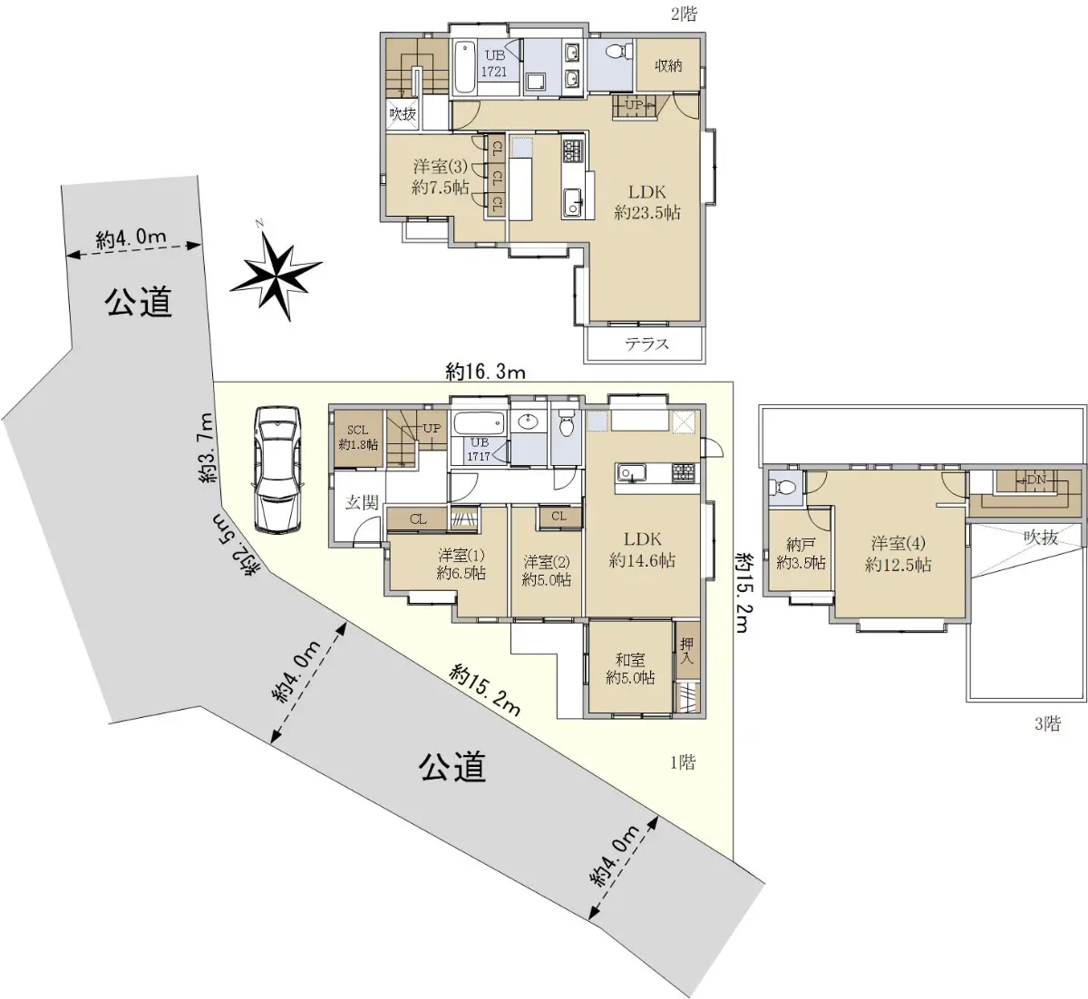 □間取り:1階 3LDK 2・3階 2SLDK