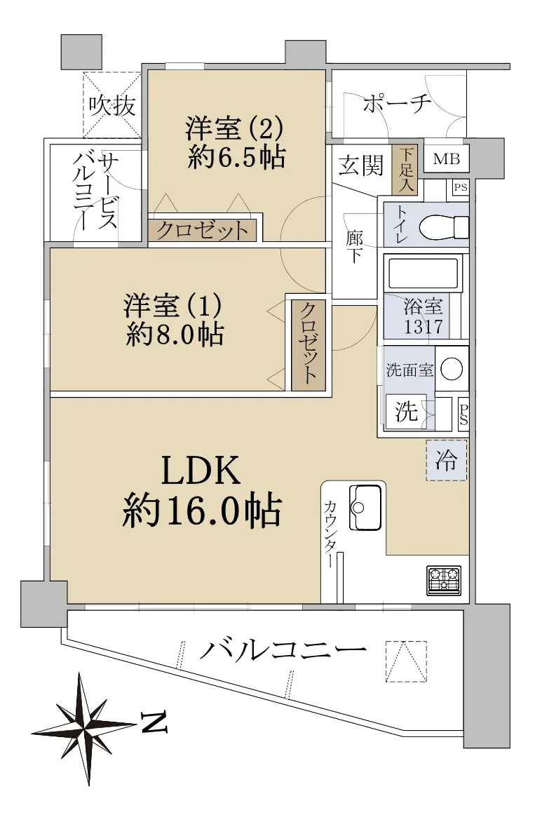 ●専有面積:63.39㎡(2LDK)