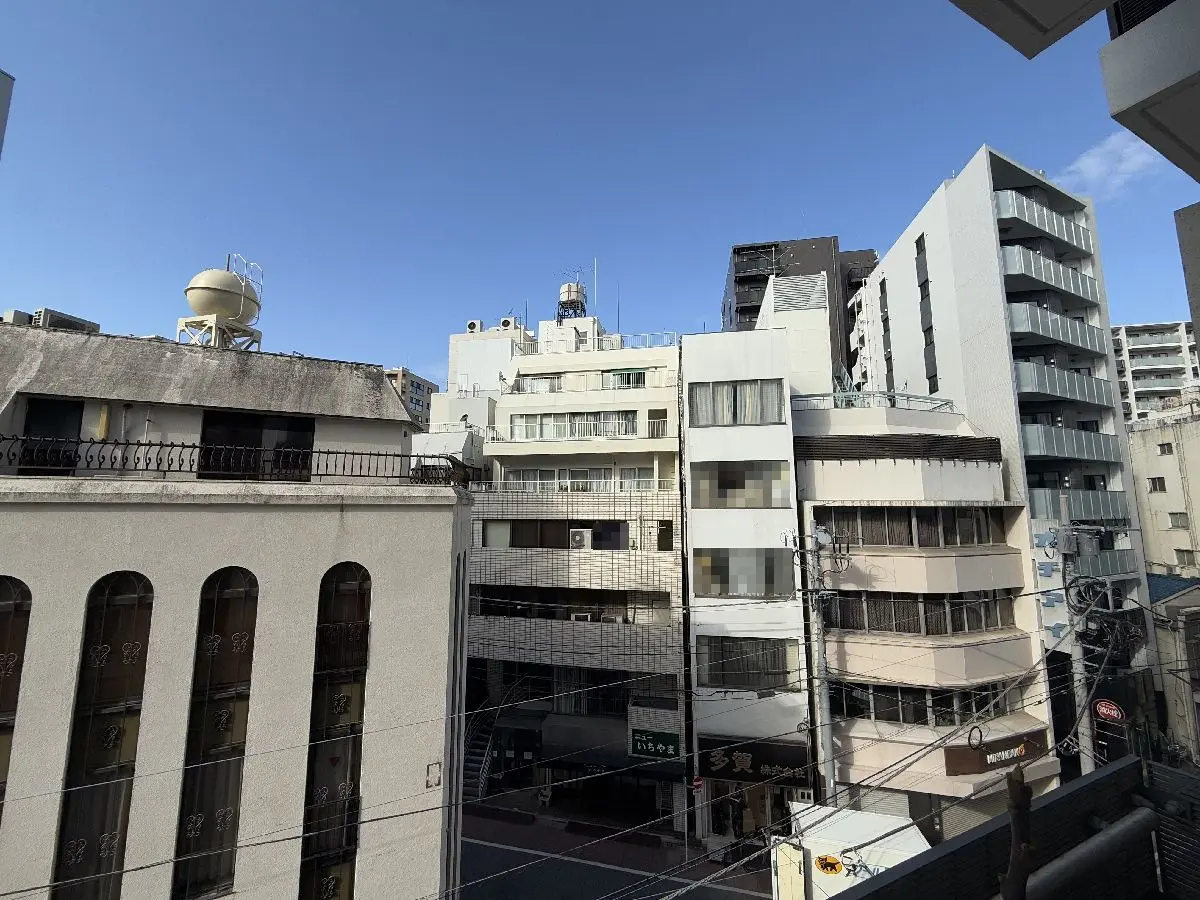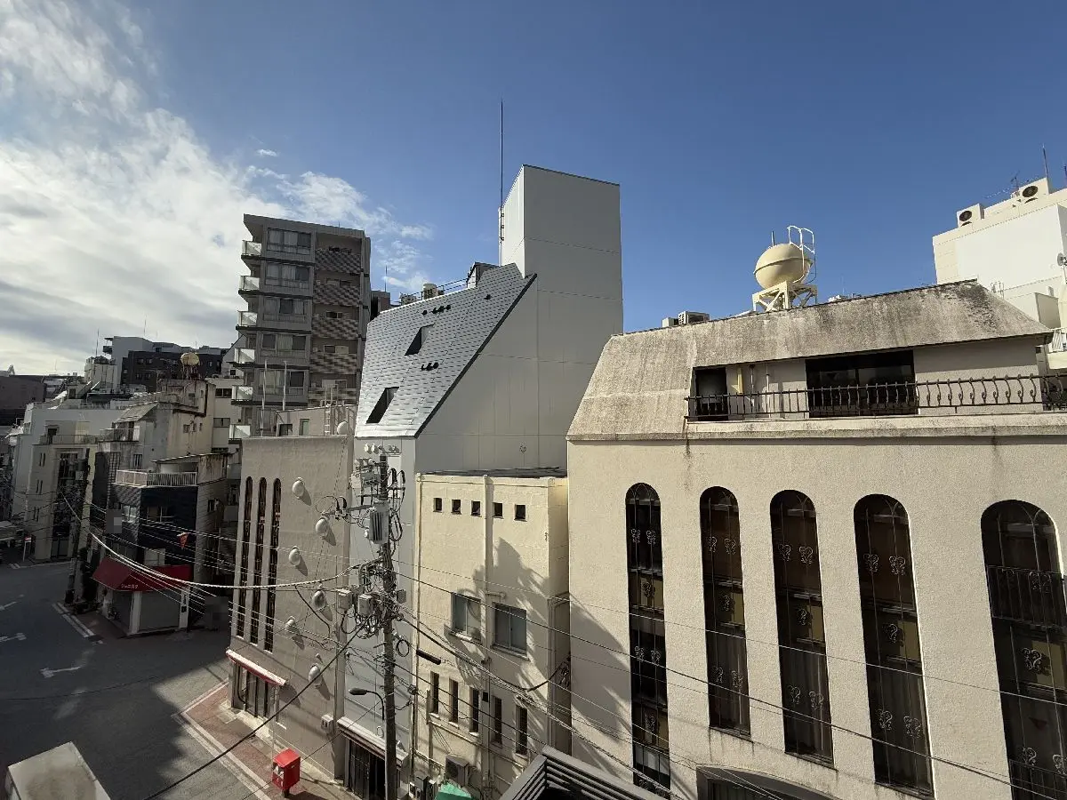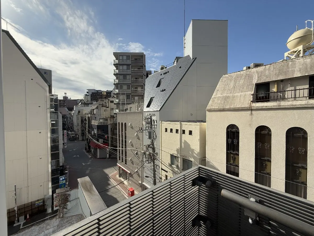 マンションや商業ビルが建ち並ぶオフィス街の一角で活気の感じられる街並みの中に位置しています。