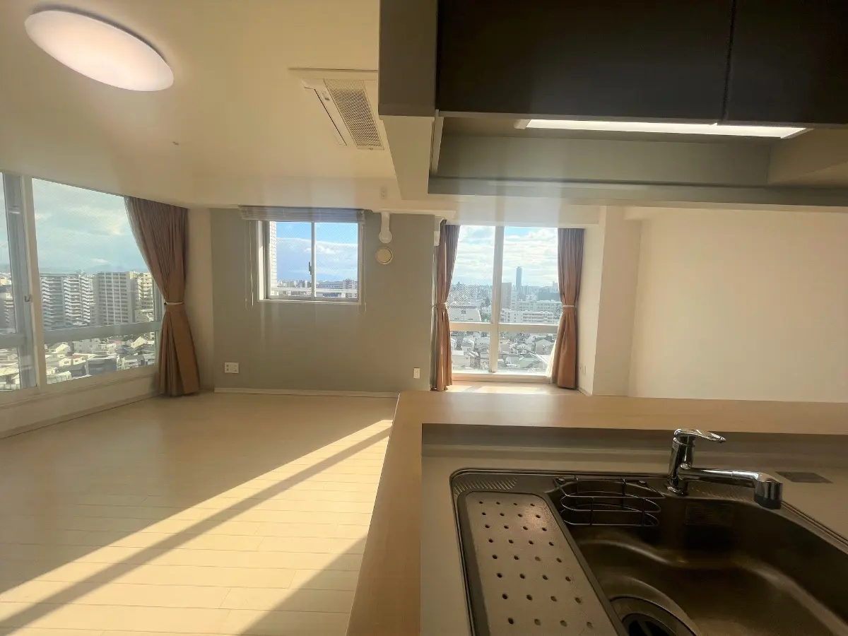 当該住戸は南西角住戸で窓も多く明るいです。あべのハルカスも望めます。(天候による。)