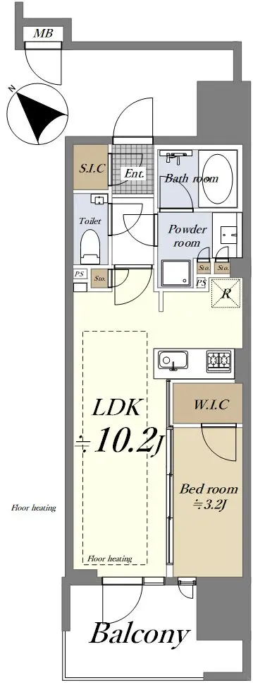 本物件は、専有面積34.31㎡の1LDKのお部屋となっており、最低限のコンパクトタイプな間取となっております。