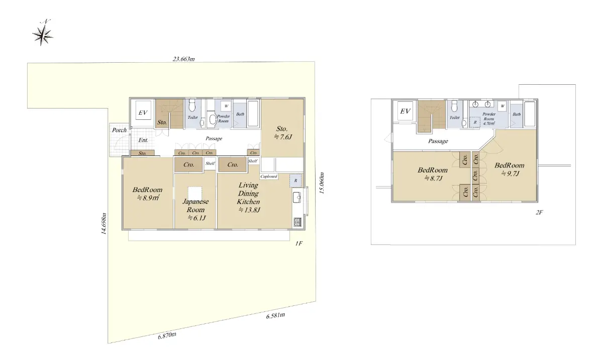 ◆建物面積:149.46㎡ (1階:91.50㎡、2階:57.96㎡)