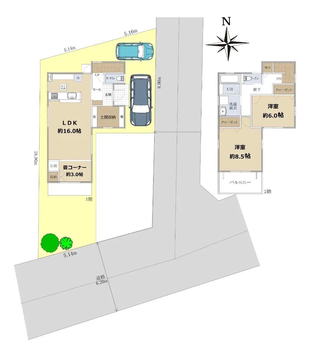 ・駐車スペース2台可(車種による)