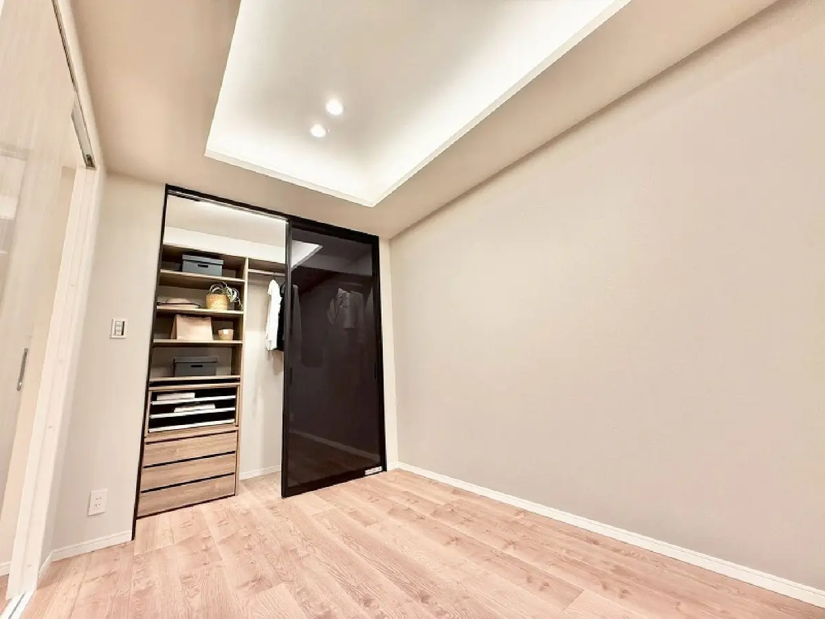 廊下面積を最小限にし居住スペースを多く確保した間取りの為、各居室に収納設備のスペースが生まれています。