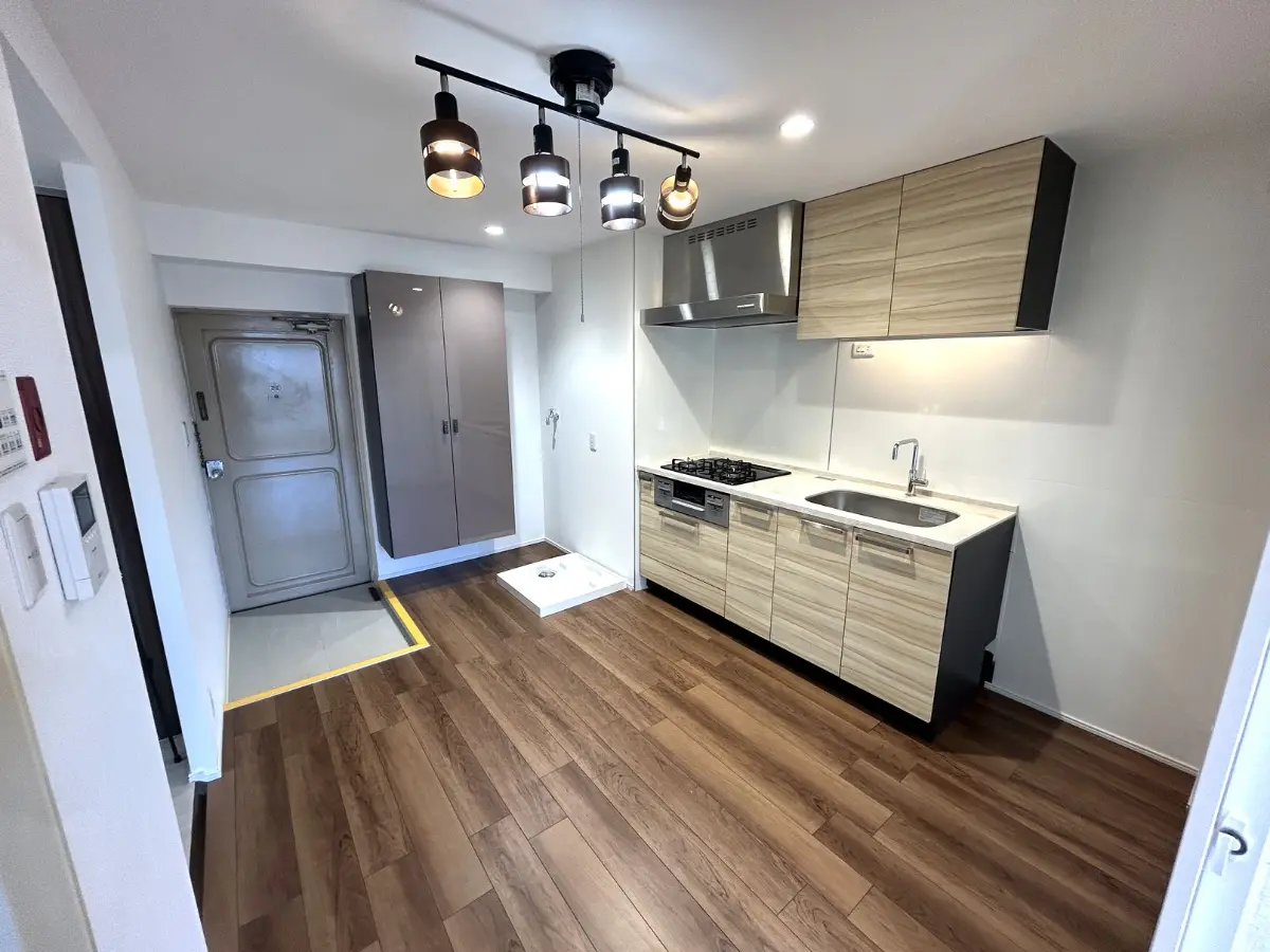 全建具交換、エアコン新規設置、下足入交換、防水パン交換