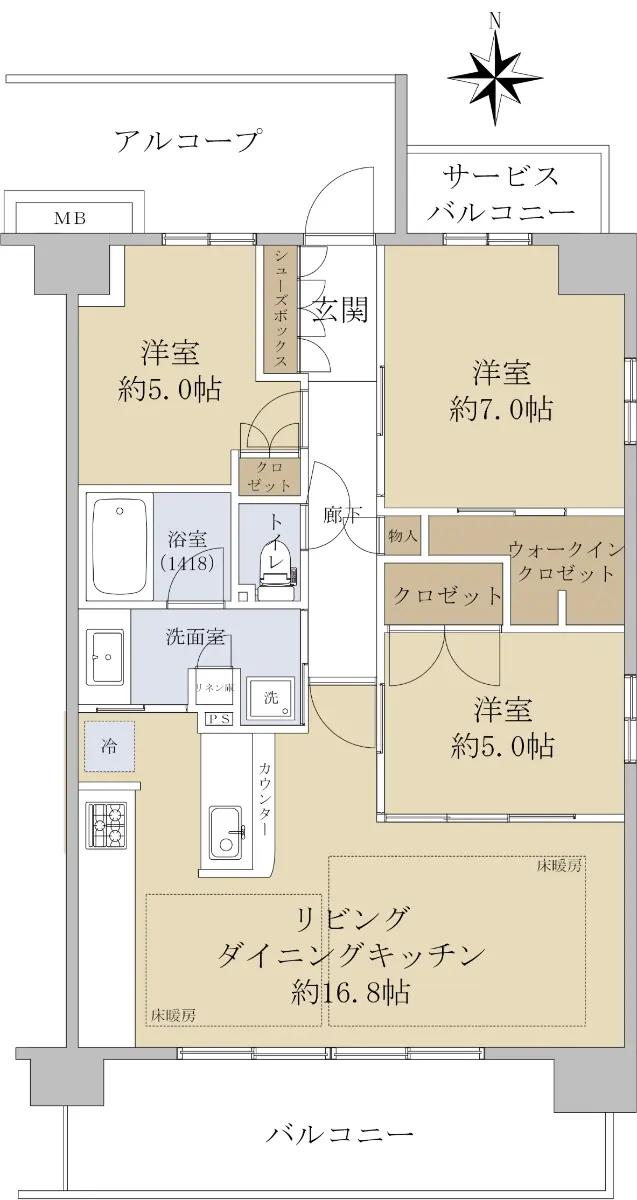 ☆床暖房2面有