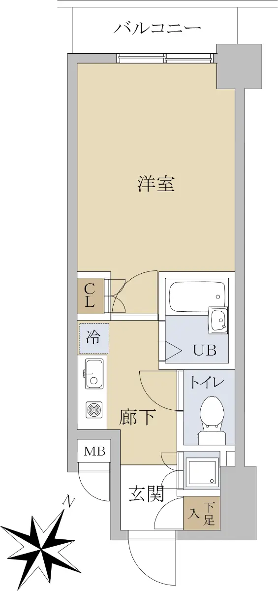 ◎8階建て5階部分・20.54㎡的1K