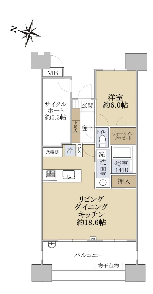 ■間取り:1LDK+サイクルポート