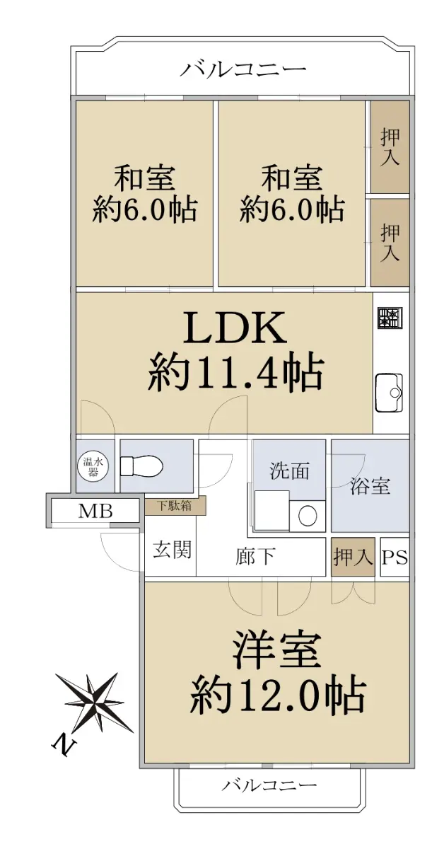 ■洋室約12.0帖