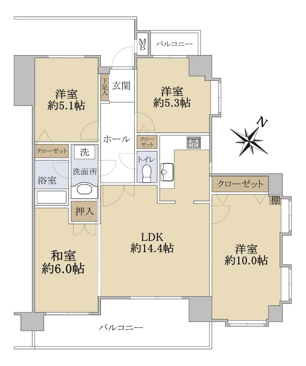 ■専有面積:85.87㎡(壁芯)的ゆとり的ある4LDK