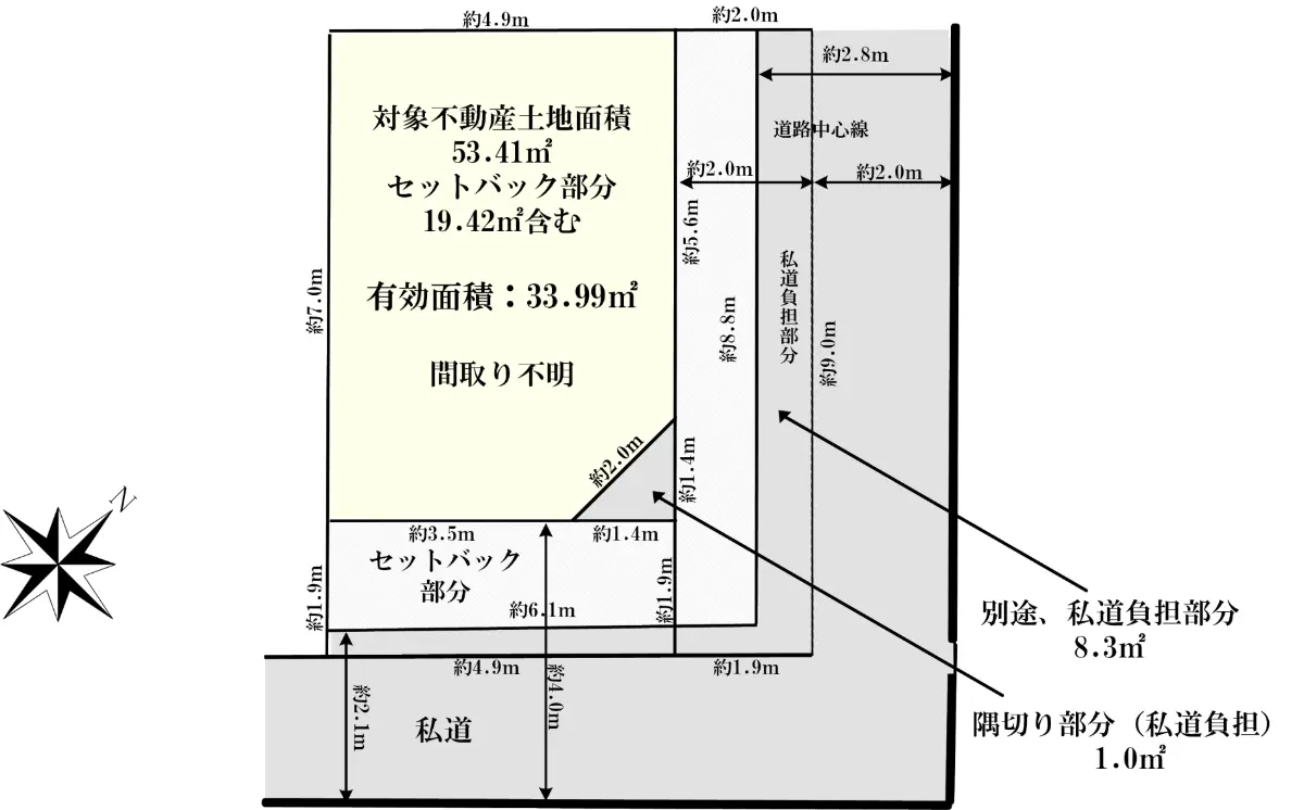 ・土地面積53.41㎡※セットバック19.42㎡含む ※他に私道負担9.30㎡あり