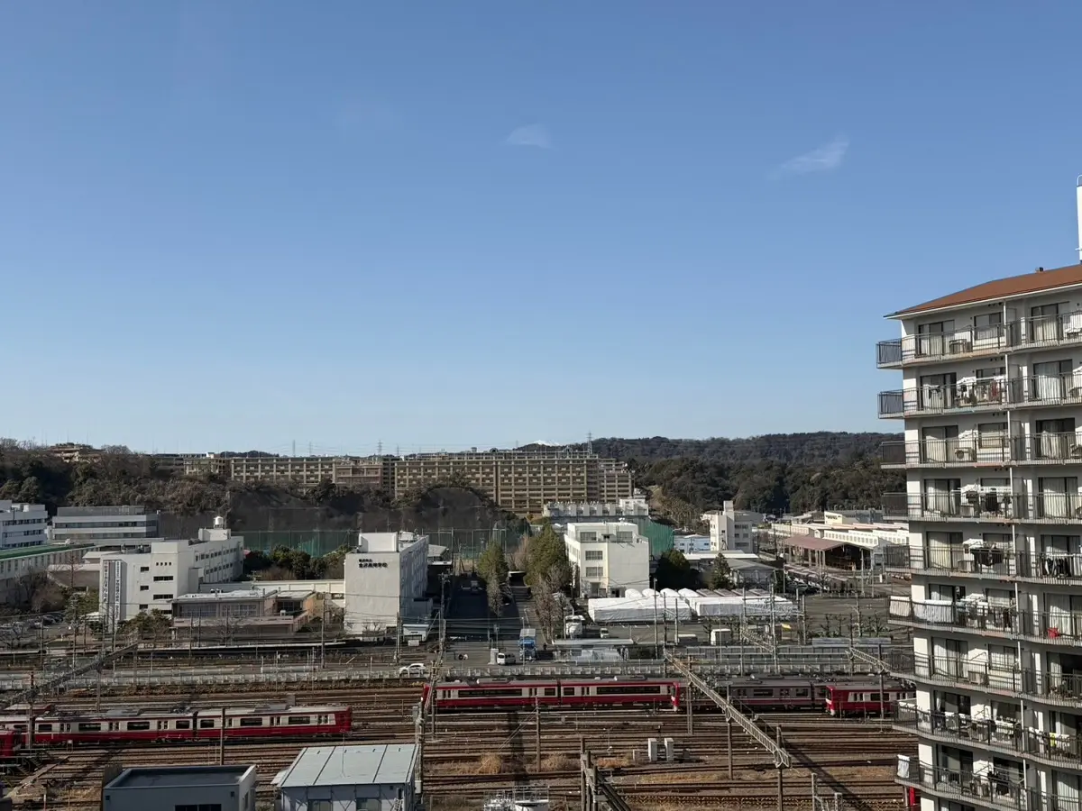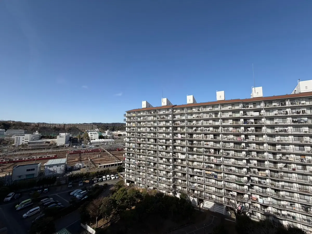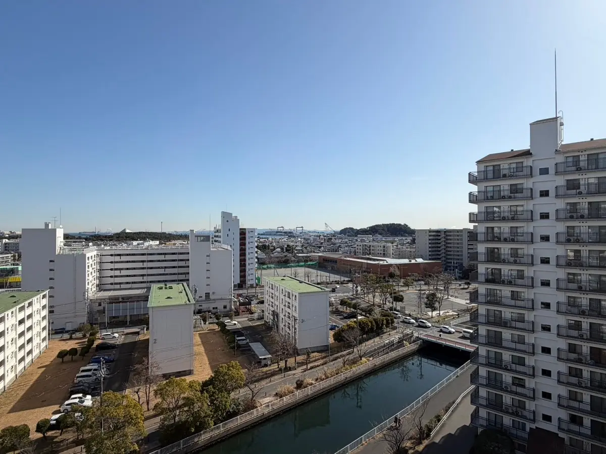 お部屋は11階、南向きのため、陽当たり、眺望良好です。南面バルコニーからは海が望めます。