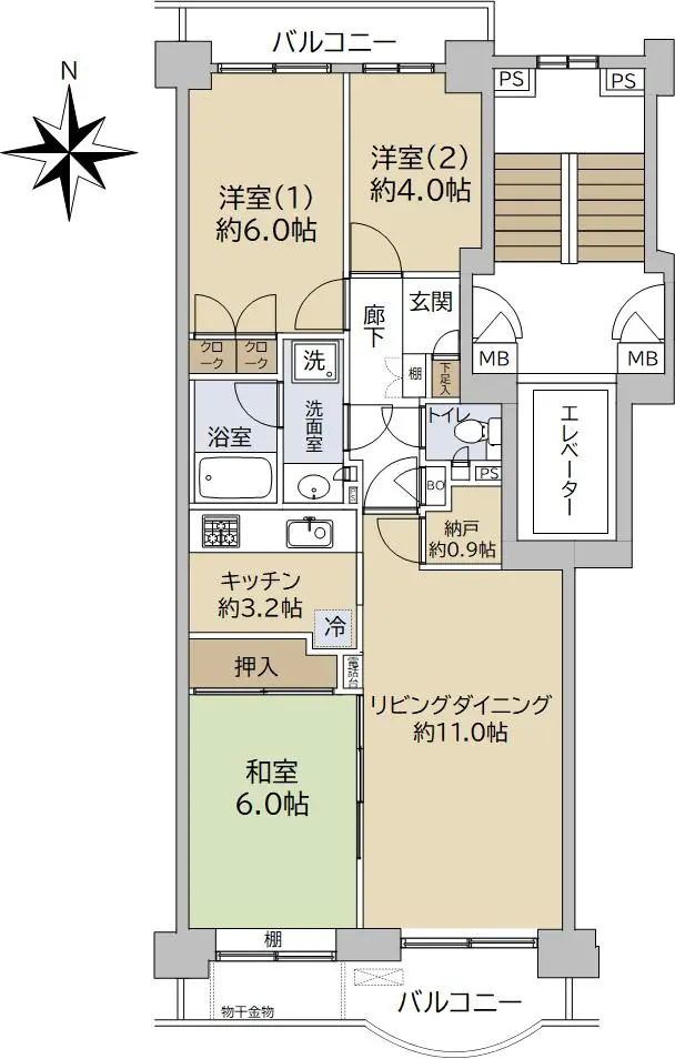 南面と北面の2面バルコニーのため、風通しも良好です。季節問わず、快適にお過ごしいただけます。