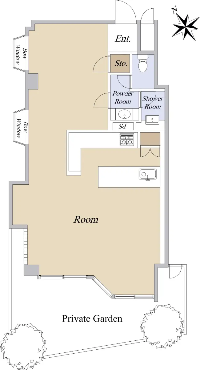 お部屋は南西×北西の角部屋に位置し、39.47㎡の広々とした専用庭が特徴的です。