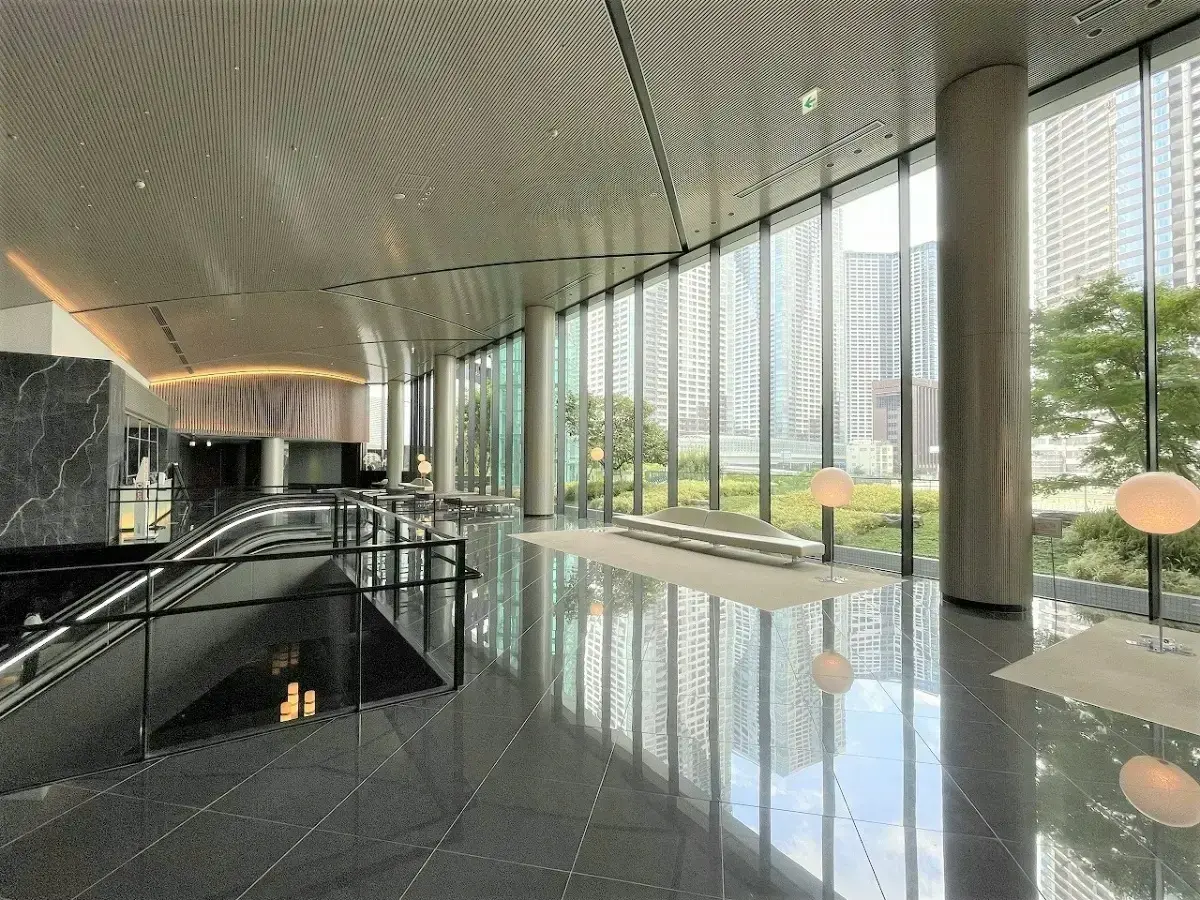 地上約180mのツインタワーはガラスを纏い、湾岸のランドマークとしての存在感を放ちます。