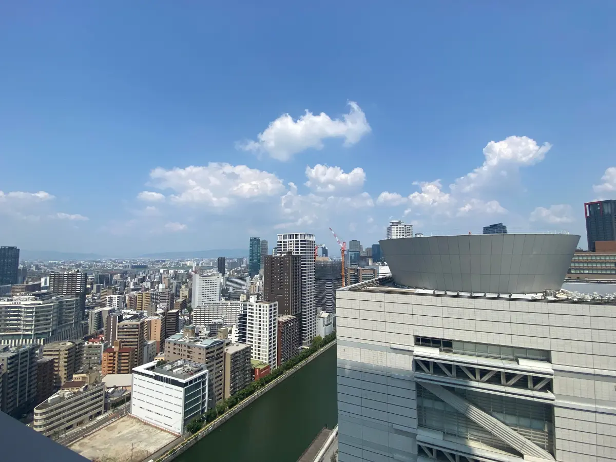 外観はスタイリッシュな雰囲気をまとっており、約193mという高さをもって堂島川のそばにそびえる姿は、大阪の中枢・中之島の風景を構成します。