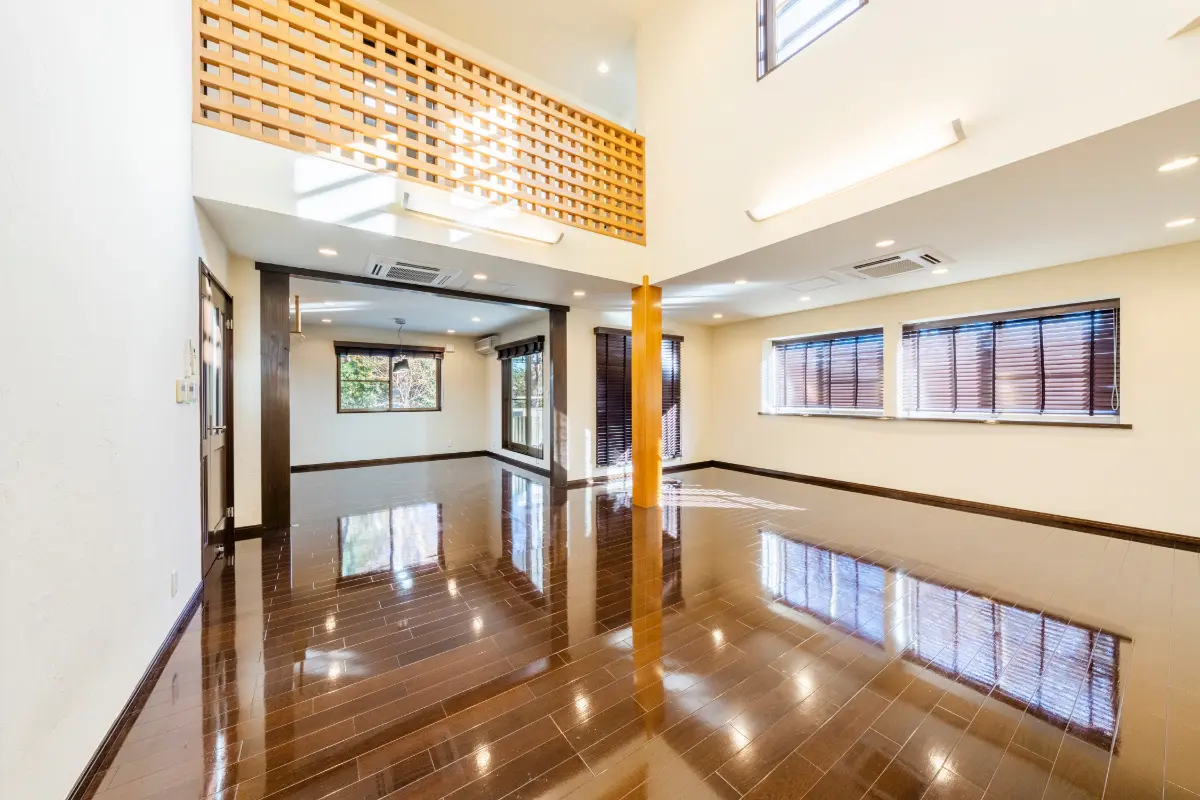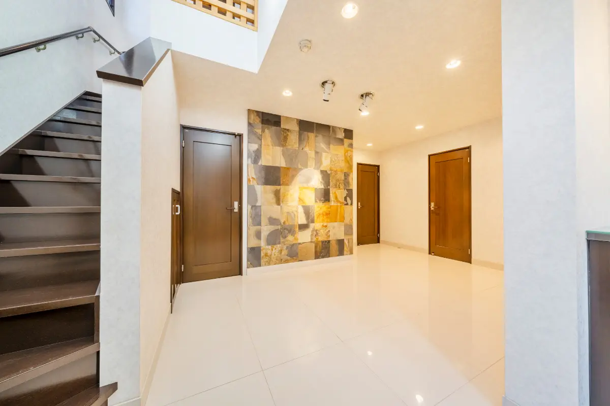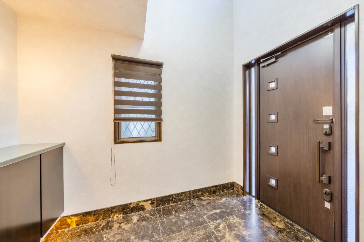 玄関入ると吹抜け、広々とした玄関ホールは室内の高さとゆとりを感じられる作りです。