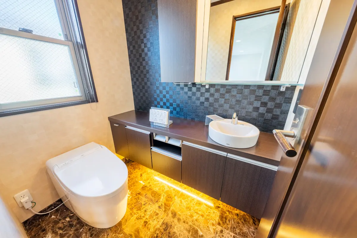 洗面室はダブルボウルの洗面台、朝の忙しい時間帯にも便利です。