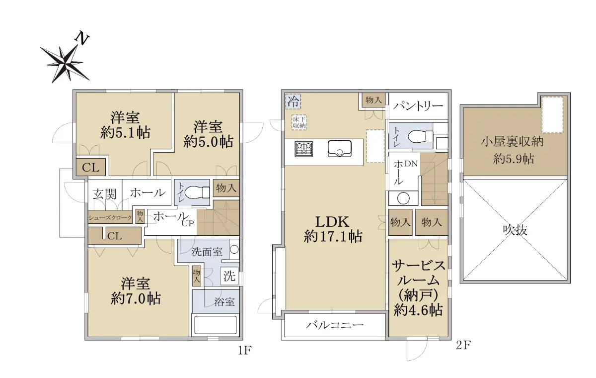1階 46.69㎡ 2階 46.15㎡