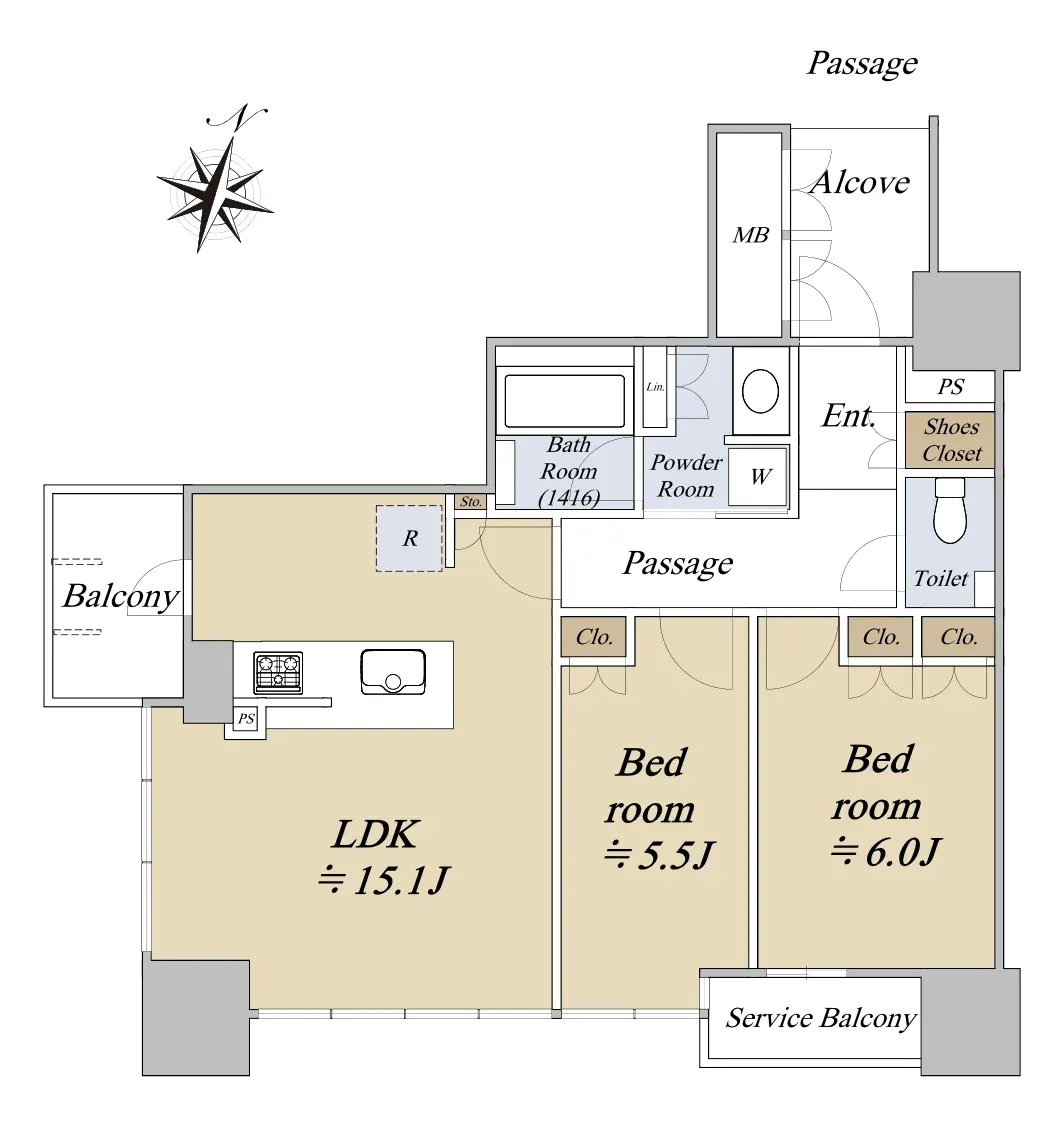 ■専有面積:60.08㎡/2LDK