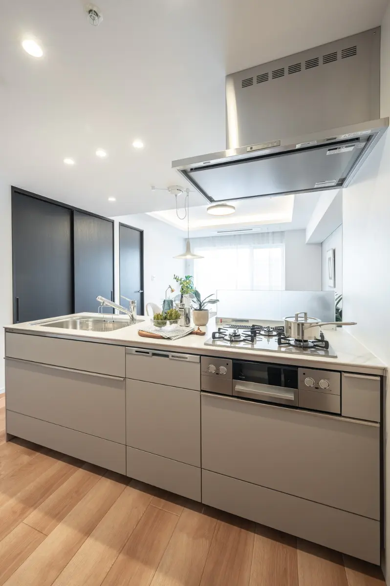 □対面式キッチン採用的約15.2帖的開放的なLDK