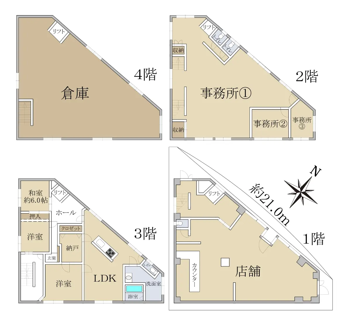 道路に面している幅が約21.0mあるため