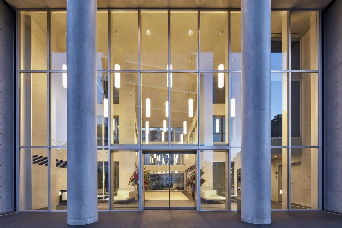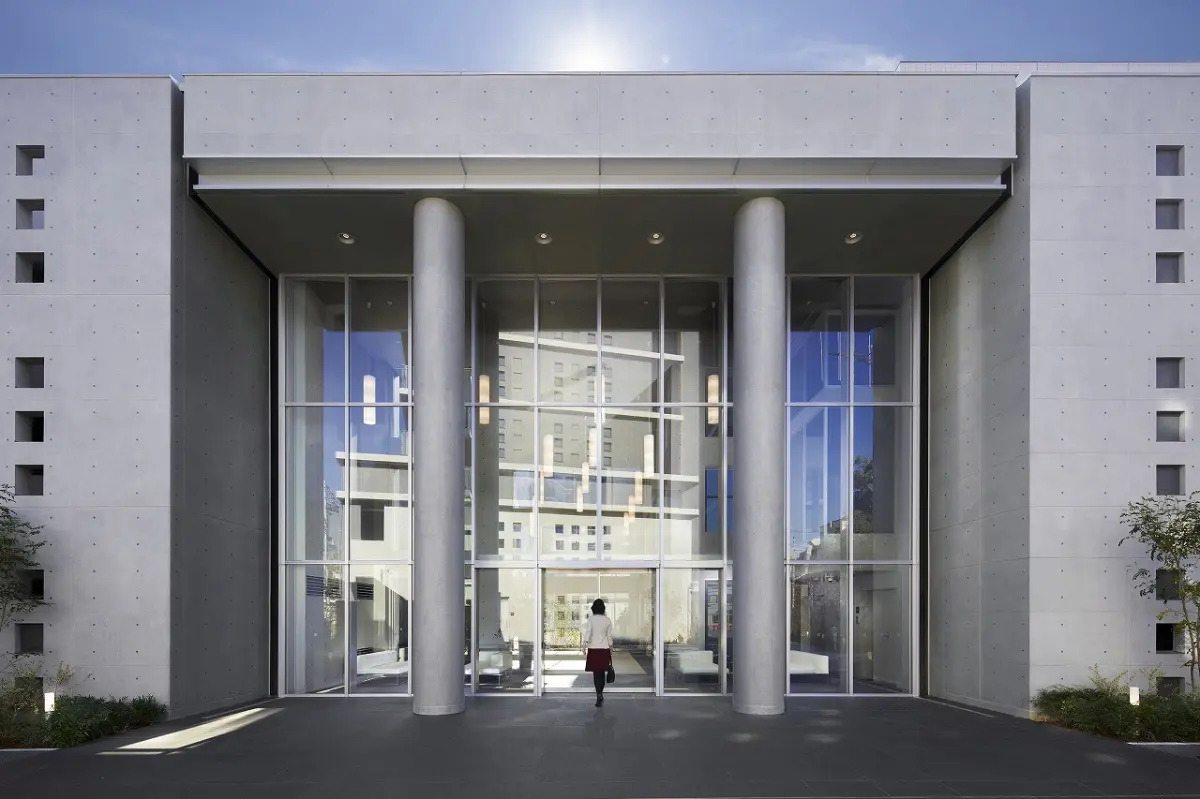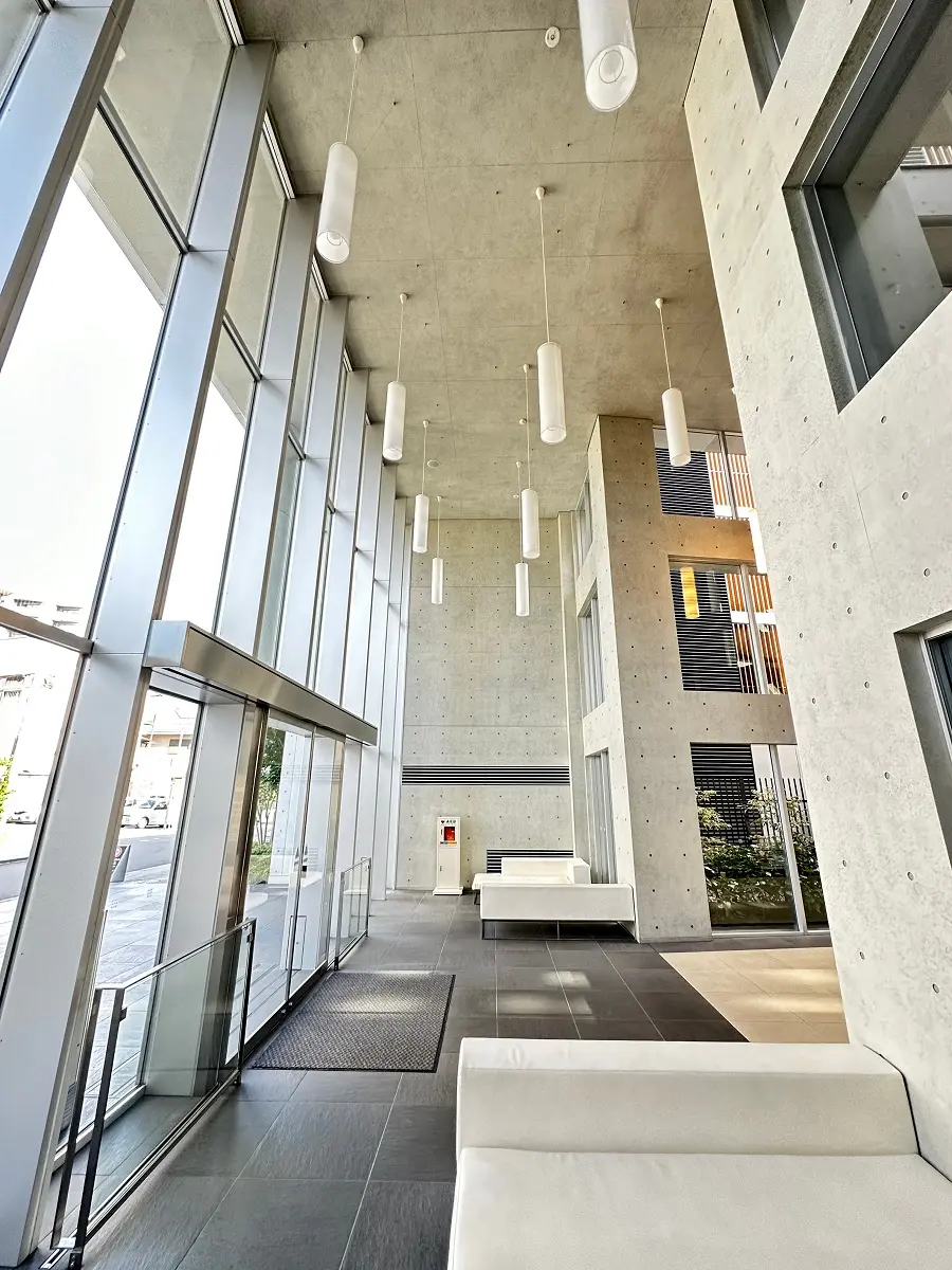 総敷地面積9000㎡越えの壮大なランドスケープで、3層吹き抜けのエントランスホールとが特徴の建物です。