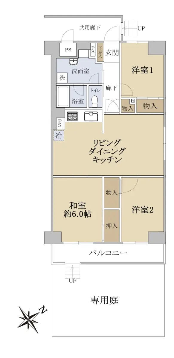 南東向きの専用庭付きのお部屋となっております。
