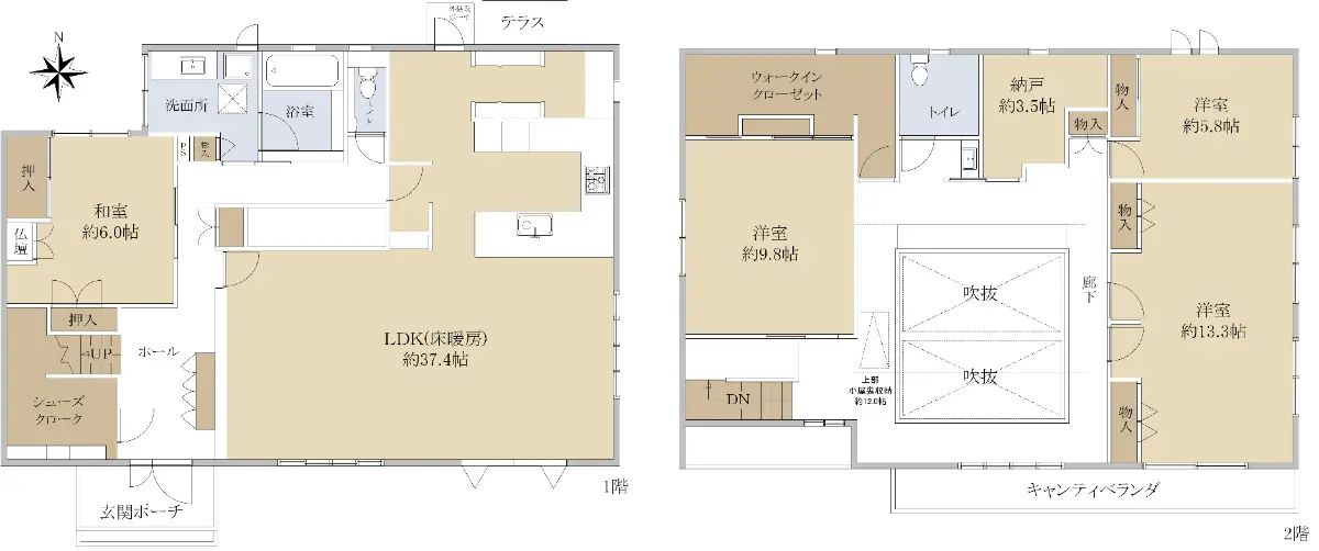 (玄関シューズクローク、2階納戸約3.5帖