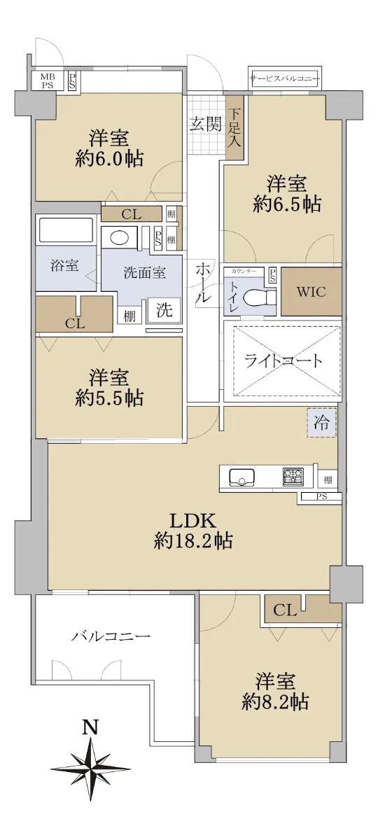 LDK約18.2帖は南向きバルコニーにしておりますので明るく、ゆったりとお使いいただけます。