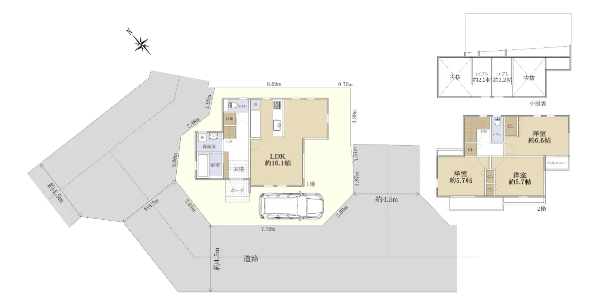 ◆間取り:3LDK+2階部分にロフト(約2.2帖)