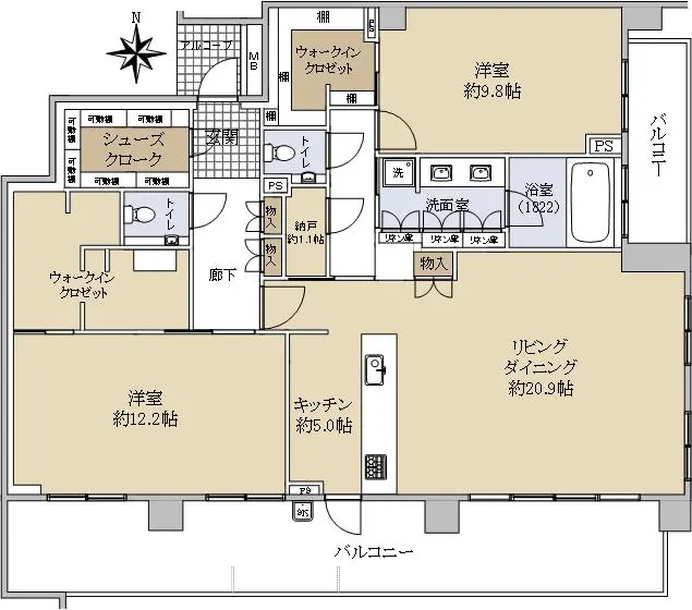 ■間取り:2LDK+WIC+SIC