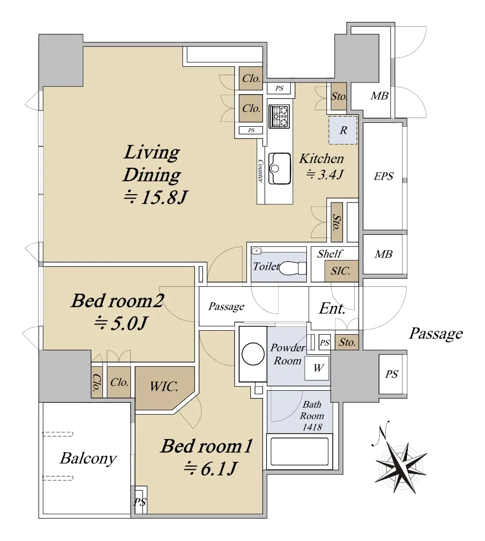 お部屋は【2LD・K+WIC+SIC】のタイプです。