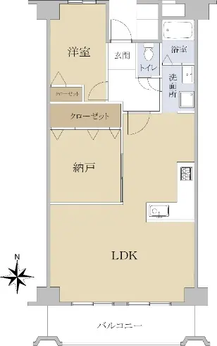 専有面積58.96㎡1LDK+納戸、収納スペースが生活の利便性を支えます。