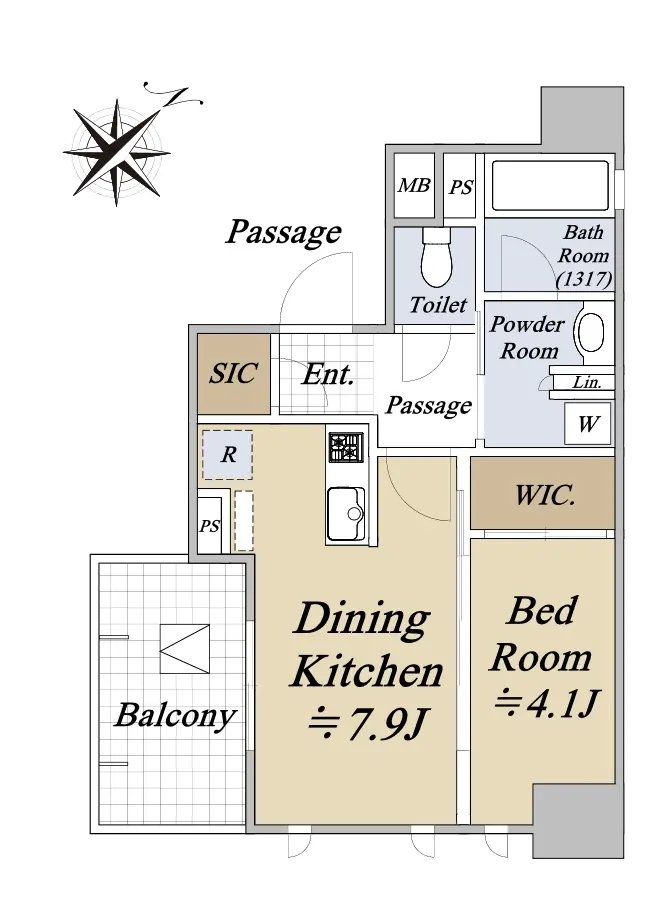 *1DK(+WIC)的間取り