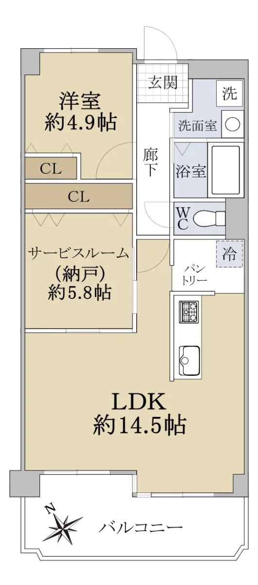 ・クロス張替(洋室約4.9帖・サービスルーム約5.8帖・廊下・LDK等)