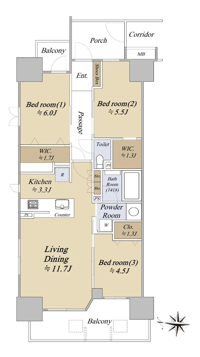 ◇71.4㎡(約21.5坪)/3LDK