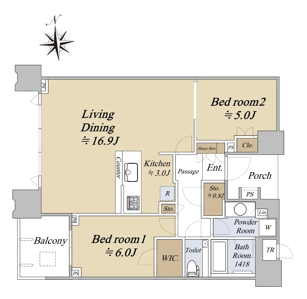 ・間取り:2LD・K+WIC(ウォークインクローゼット)