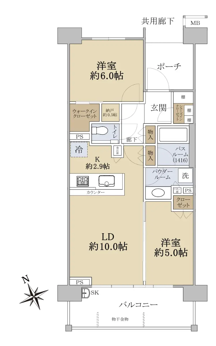 2LD・K 専有面積56.90㎡