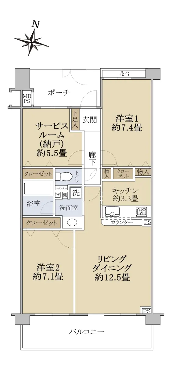 面積 74.60㎡