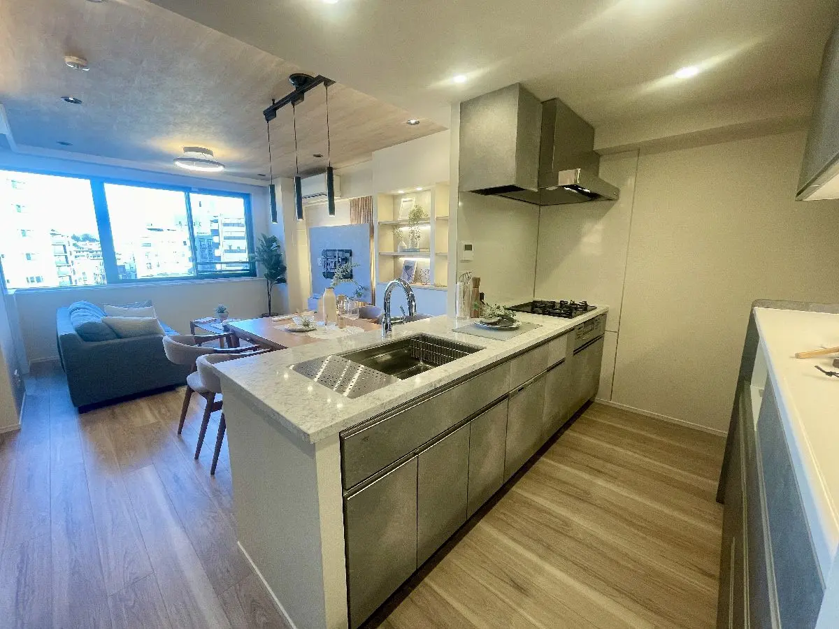 室内は新規リノベーション済みで、特にTES式床暖房をリビングダイニングと洋室(約6.5帖)の2面に設置しており、冬場も足元から暖かくお過ごしいただけます。また、アウトフレーム工法のため家具配置もしやすい点も魅力的です。