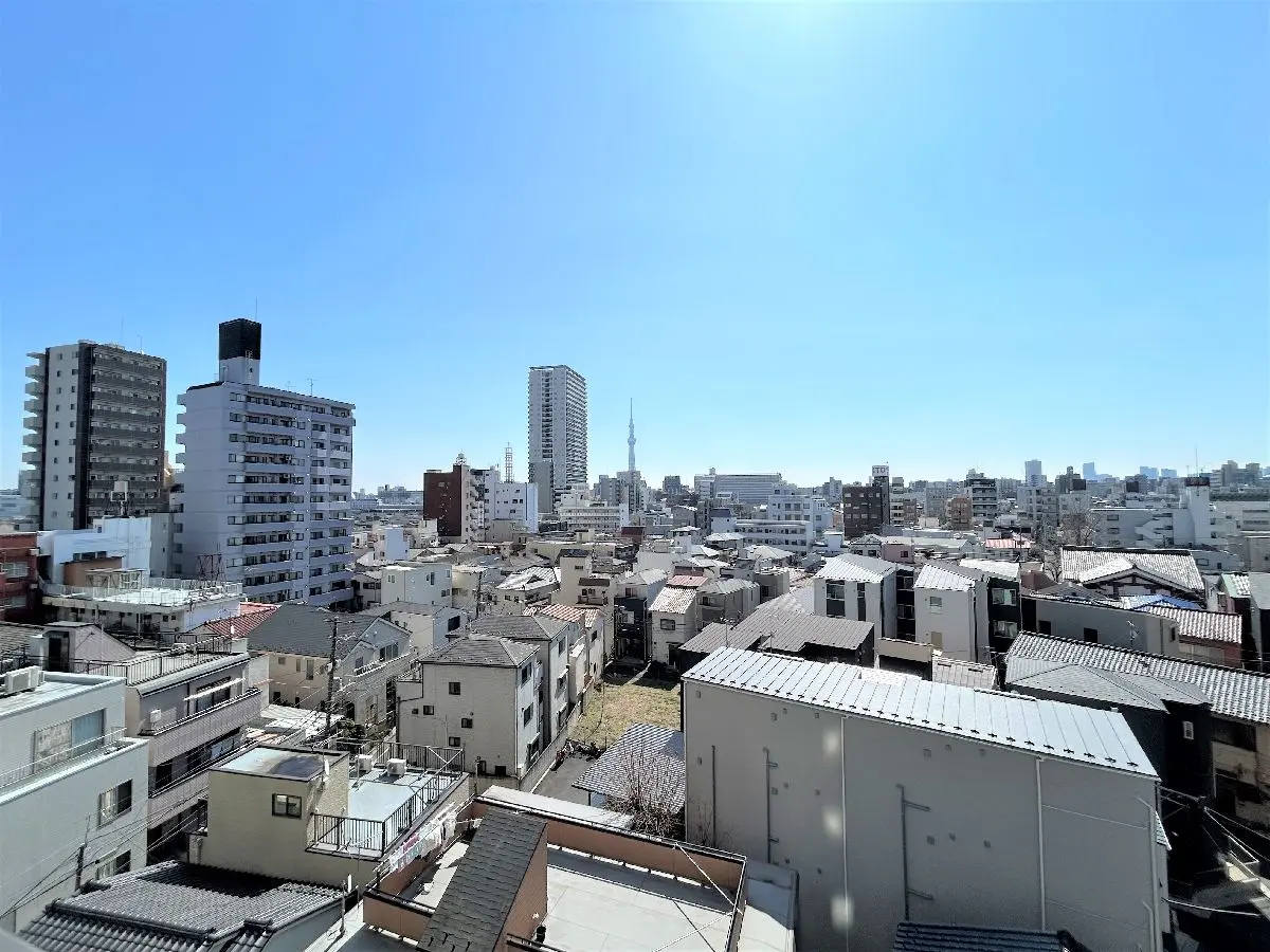 6階部分の南・西向き角住戸のため、陽当たり・眺望はとても良好で、天候によってはスカイツリーを望むことができます。