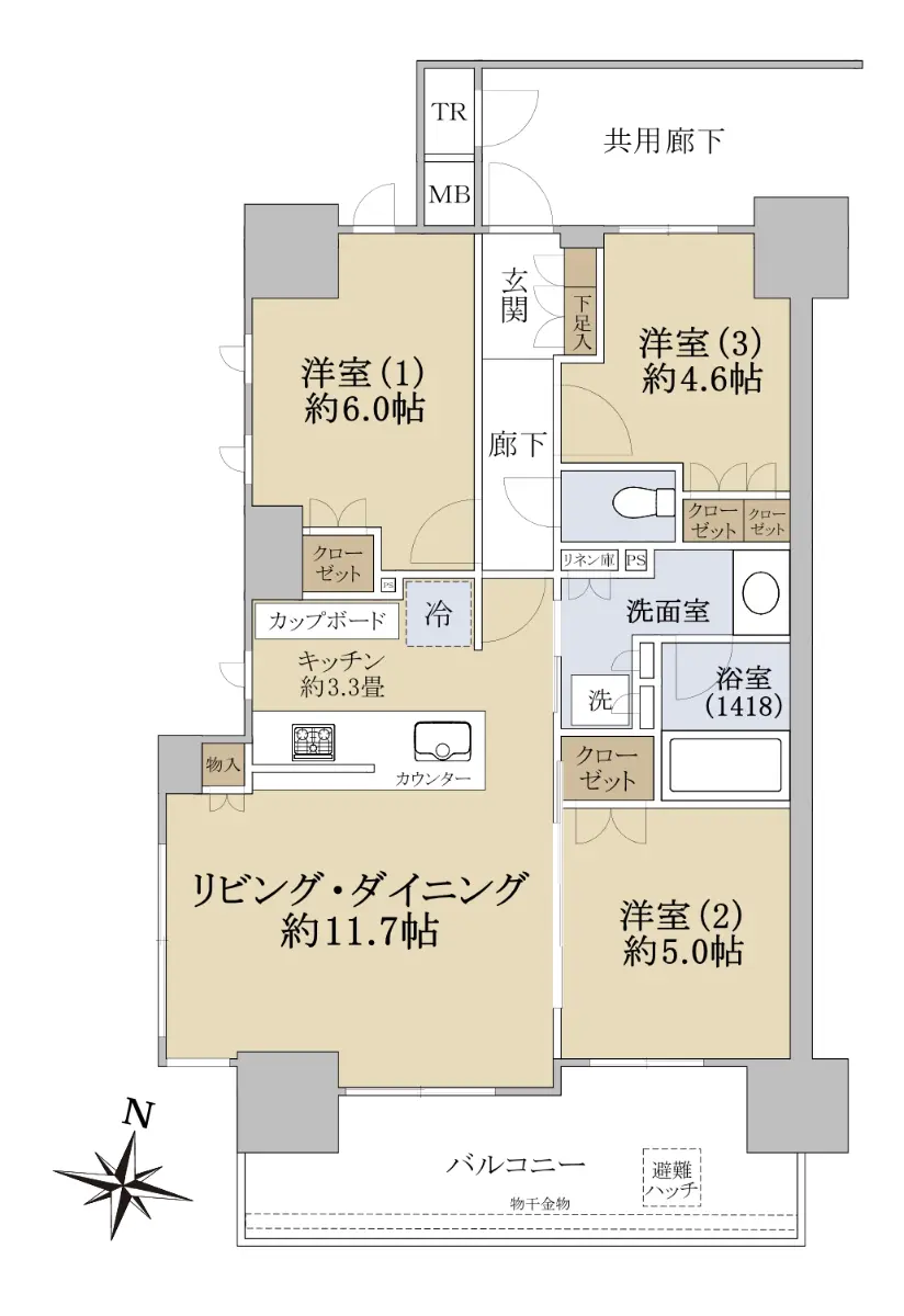 ○専有面積:67.18㎡/間取り:3LDK