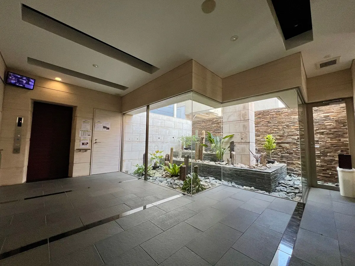 ワンフロア2住戸のみの設計に加え、エレベーターは2方向出入口仕様で降りると対象住戸のみとなるプライバシー性の高い住戸配置も特徴です。