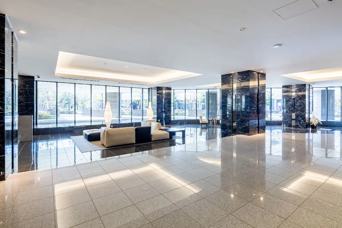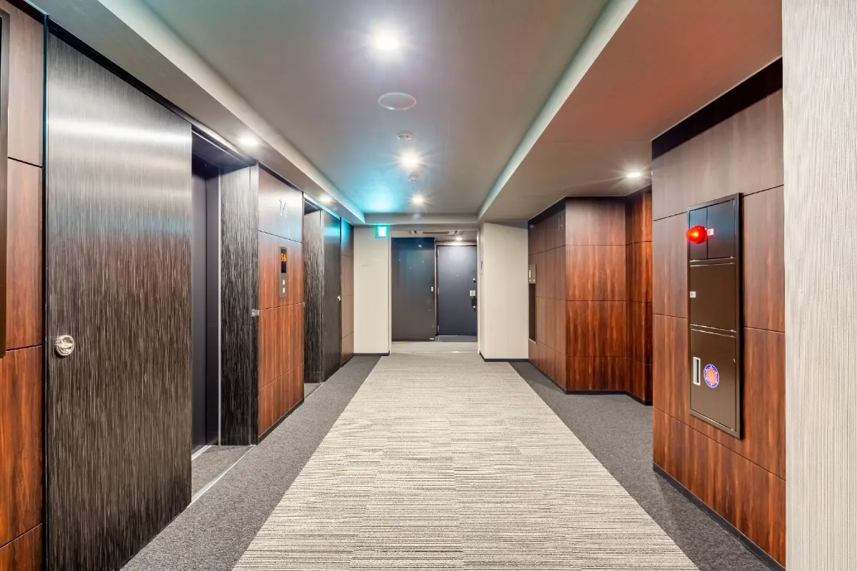 ホテルライクな内廊下設計、各階にゴミ置き場があるなど魅力的な共用部分でございます。