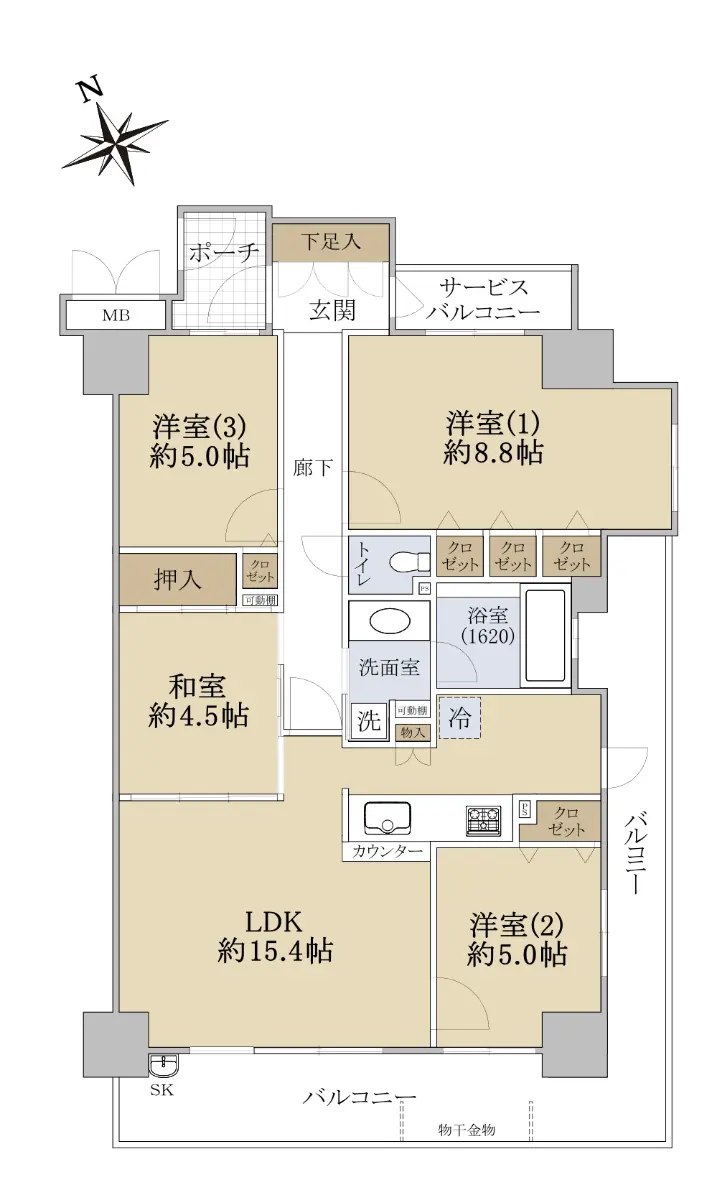 ■84.7㎡的4LDK的角部屋で広々としたお部屋。