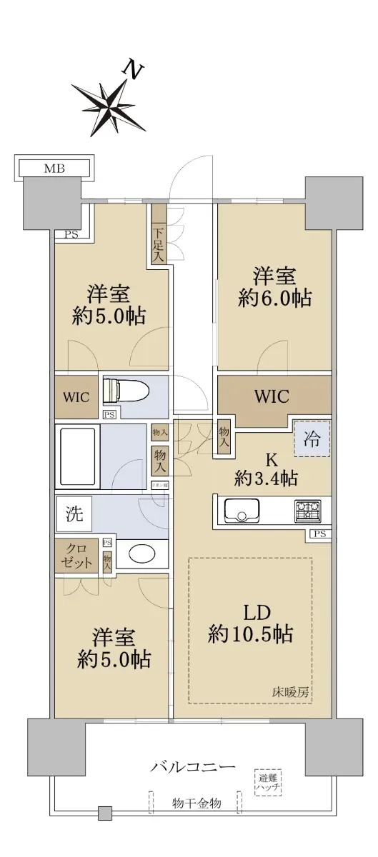◇間取り:3LDK+WIC×2、専有面積:68.50㎡