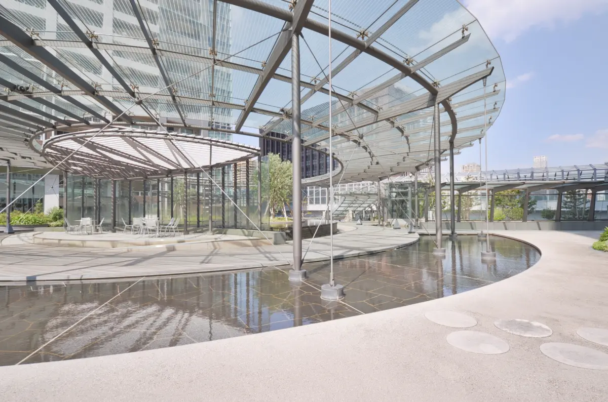 都心側に位置するMID TOWER、海側に位置するSEA TOWER、居住者専用スポーツ施設シーサイドアネックスからなる敷地内には、水と緑に溢れた美しい風景のセントラルパークを中心に、水辺の立地の潤いを充分に活かした環境が作られています。※一部分譲パンフレット参照