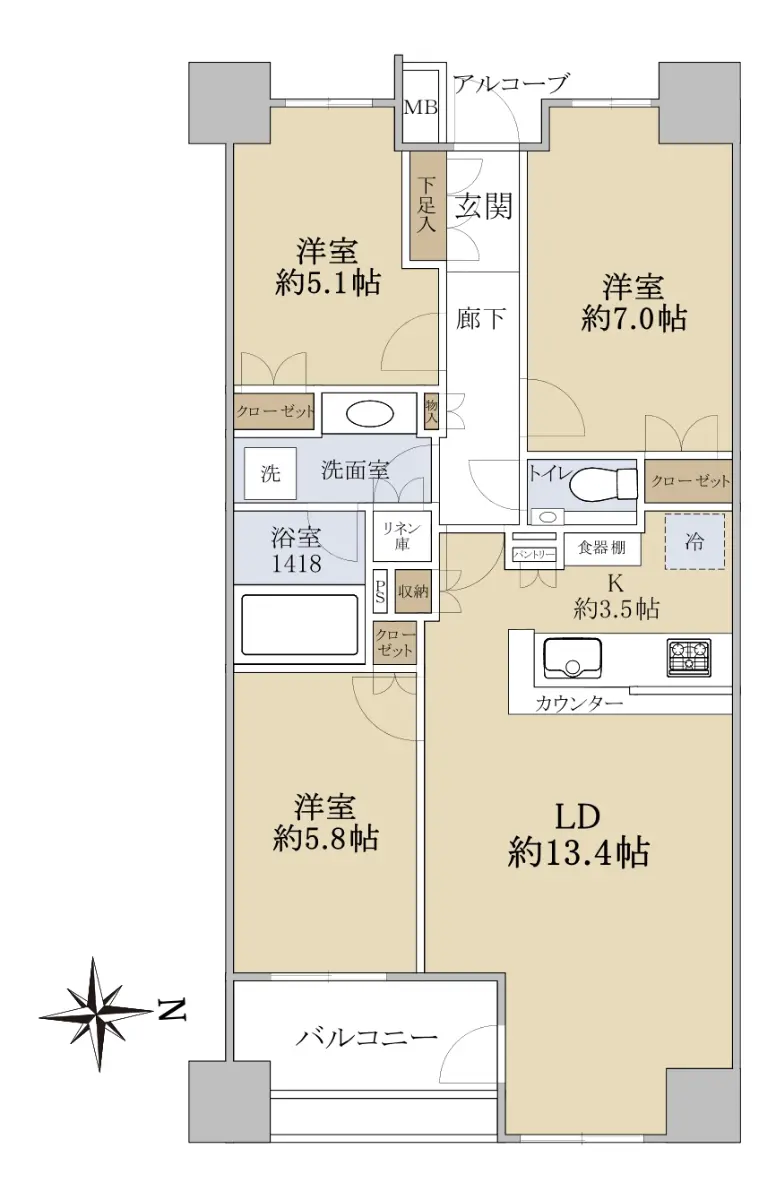 3LD・K 専有面積73.26㎡
