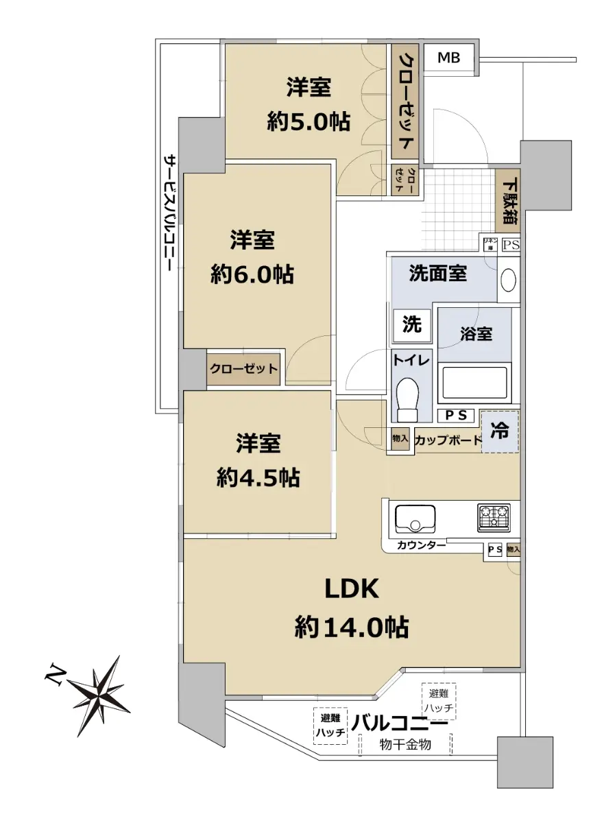 ・専有面積 63.63㎡的3LDK